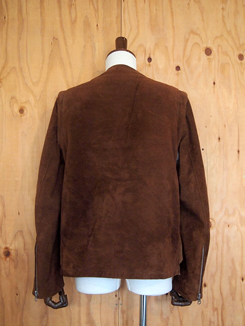 カウレザーのスエードを使用しており、着ていく内にレザーは柔らかく馴染み、経年変化も楽しんで頂けるアイテムになります。