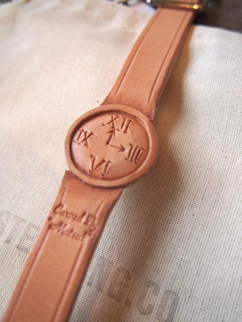 時計の形をしたレザーブレスレットになります。